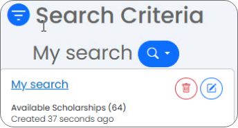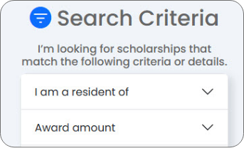 With your account, you can search for scholarships that match your specific interests and criteria. Once you find matches, you can save specific scholarships or whole search results to come back to later or share results with others.